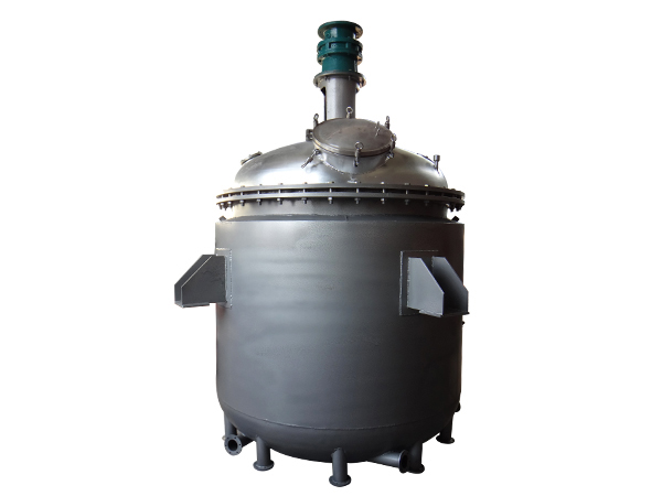 鍋體與鍋(guō)蓋由法蘭(lán)密封聯接,鍋體下部有放(fàng)料孔,鍋內有攪拌器(qì),鍋蓋上開(kāi)進料、攪拌觀(guān)察、測溫測壓、蒸汽引出分餾、安全放空等(děng)工藝管孔。