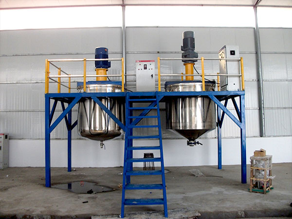 真石漆是一種非常粘的液體物料,在其製作(zuò)的過程(chéng) 中先攪(jiǎo)拌基礎液體(tǐ)(發泡(pào)劑、增(zēng)稠劑),再放入實體粉狀物料, 所以我公司在其(qí)攪拌時的轉做了更精端的改近, 特別是為了防止真石漆這種物料死死的粘在筒(tǒng)體內, 特別在攪拌軸(zhóu)的最外端另(lìng)加了不鏽鋼鍋刷。